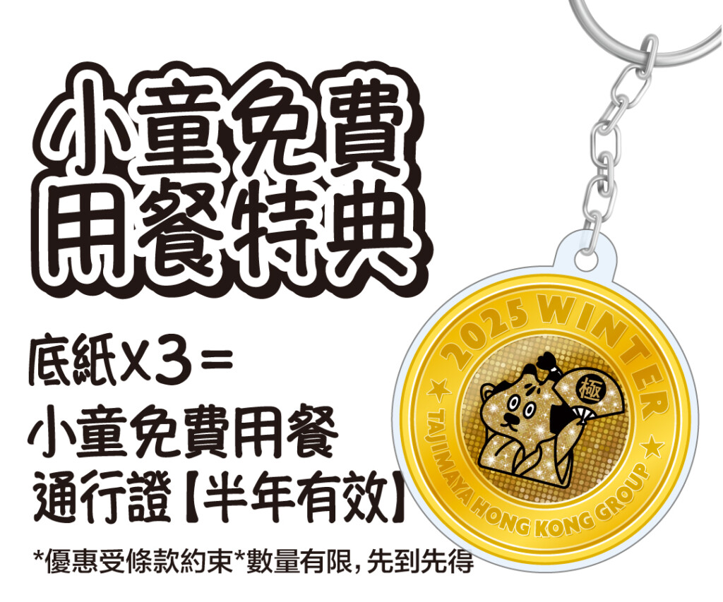 • 集齊3張貼紙背面底紙,即可換領限定版【小童免費用餐通行證鎖匙扣】乙個~ 這個鎖匙扣是專為小童設計的專屬禮遇!